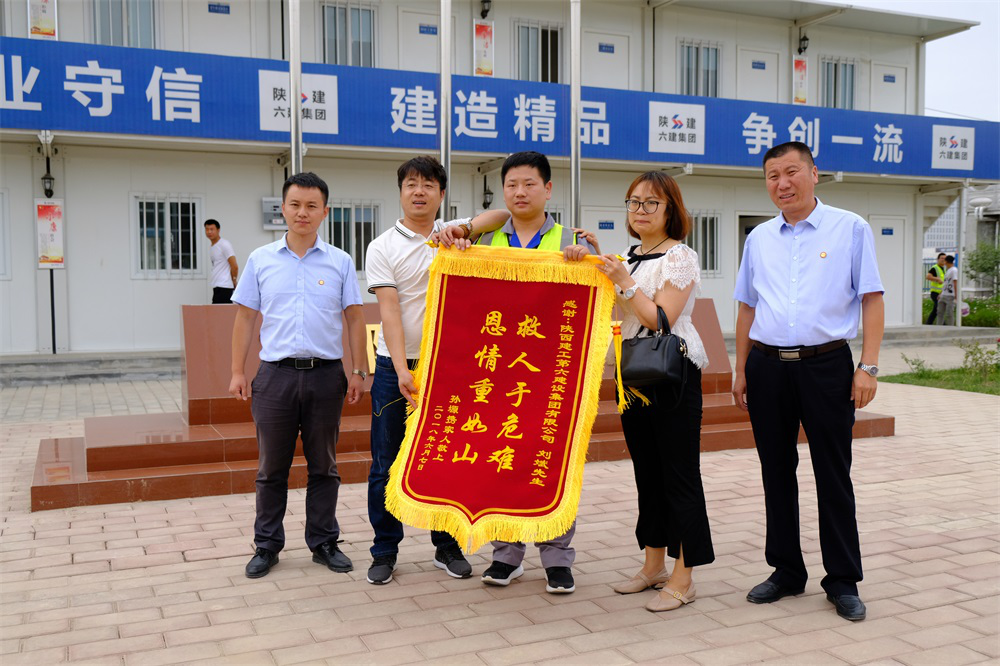 6月7日上午,在陜建六建集團(tuán)咸陽(yáng)高新區(qū)電子科技企業(yè)孵化園一期工程項(xiàng)目部發(fā)生了感人一幕,家住西安的孫先生攜家人專程趕到項(xiàng)目部,將一面鮮紅的錦旗親自送到陜建六建集團(tuán)青年職工劉斌手上,以感謝他對(duì)孩子文文的救命之恩。孩子的姥姥一邊緊緊拉著劉斌的手,一邊流著感激的眼淚,不停地說著感謝的話。經(jīng)過深入了解,劉斌熱心救助車禍小女孩文文的暖心事跡漸漸清晰。